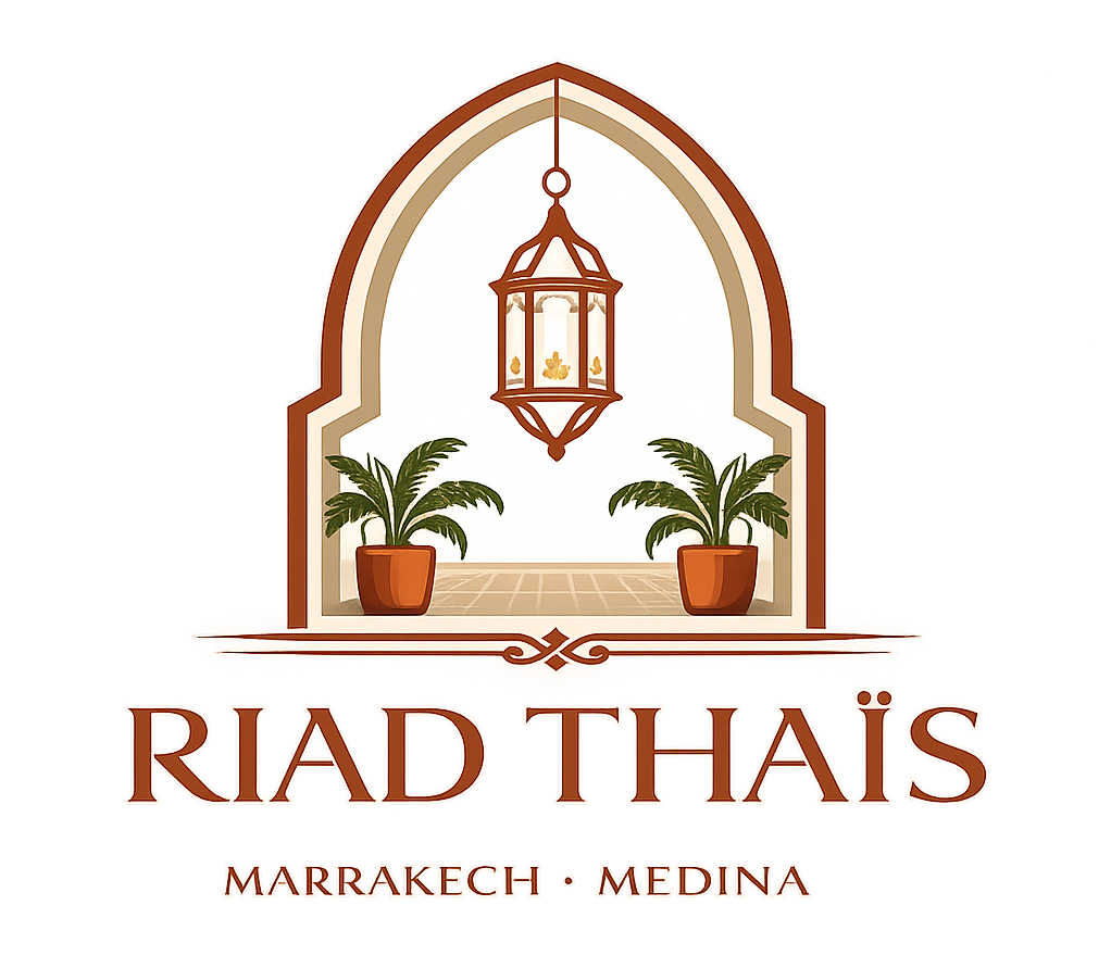 Riad Thaïs is a traditional guesthouse located in the heart of the historic medina of Marrakech. Hidden within the quiet streets of the old city, the riad offers a peaceful retreat surrounded by authentic Moroccan architecture, lush greenery, and a tranquil courtyard atmosphere.